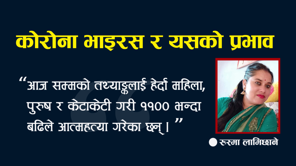यहाँ रोगलेभन्दा पनि अझ बढि त भोकले मानिसको मृत्यु भएको छ । आज सम्मको तथ्याङ्कलाई हेर्दा महिला, पुरुष र केटाकेटी गरी ११०० भन्दा बढिले आत्महत्या गरेका छन् । लक डाउनको स्थितिले गर्दा मानिसले काम पाएका छैनन् काम नभए पछि गरिबको घरमा चुल्हो बल्न सकेको छैन । भोको पेट लिएर कतिञ्जेल बाँच्न सकिन्छ र ? अन्ततः मानिसले आत्महत्या रोज्न बाध्य भएका छन् । व्यापार, व्यवसाय गर्ने उद्देश्यले लिएको बैंकको ऋणकोभार, घरभाडा र कोभिड-१९ को सन्त्राससँगै बढ्दै गएको आर्थिक मन्दिले मानिसलाई थिलथिलो बनाएको छ । भाइरसको प्रभाव सबैतिर र सबैलाई परेको भएपनि अझ बढि त हुँदा खाने वर्गलाई परेको छ । आज कमायो आजै खायो गर्ने वर्ग हाम्रो समाजमा धेरै नै छन् ।