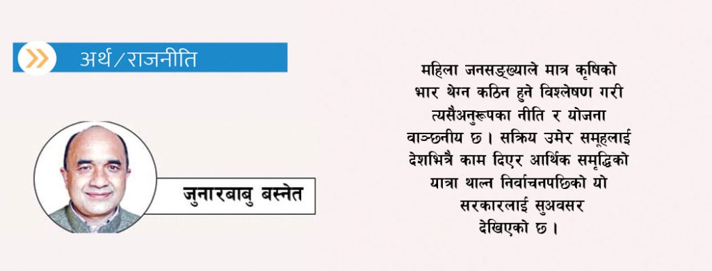 लाख ७७ हजार ३१८ अर्थात् १०.२१ प्रतिशत पुगेको छ । स्वास्थ्य सुविधा लगायतले आगामी दिनमा बढ्यौलीको सङ्ख्या बढ्नेछ । त्यसअघि नै हामीले आर्थिक समृद्धिका तह निर्धारण गर्नुपर्नेछ ।