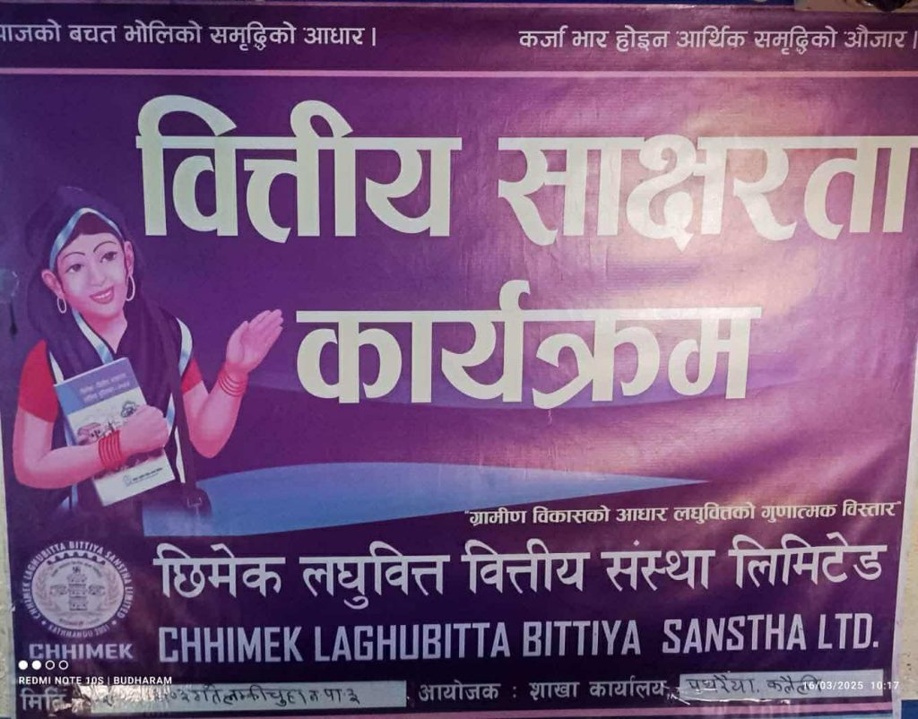 कैलाली – छिमेक लघुवित्त वित्तीय संस्था लिमिटेड शाखा कार्यालय पथरैयाद्वारा Digital Bus मार्फत आयोजित पहिलो दिनको वित्तीय साक्षरता कार्यक्रम लम्किचुहा नगरपालिका वाडा नं. ३,व्यवस्थितनगर टोलमा भव्य रूपमा सम्पन्न भएको छ। संस्थामा आबद्ध सदस्य, अभिभावक तथा समाजका अन्य सदस्यहरूको व्यापक सहभागिताका बीच सम्पन्न कार्यक्रममा वित्तीय साक्षरताका विभिन्न महत्वपूर्ण विषयहरूमा जानकारी प्रदान गरिएको थियो।