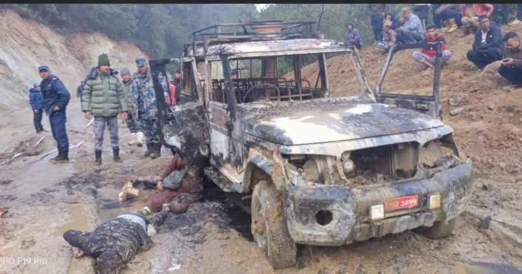 प्रहरीका अनुसार, जीप सडकमा अगाडि बढ्दै गर्दा अचानक माथिबाट झरेको हाई-भोल्टेज विद्युत् तार गाडीमा खस्दा करेन्ट लागेर आगलागी भएको थियो। आगोले गाडी पूर्णरूपमा जलेर नष्ट भएको छ।