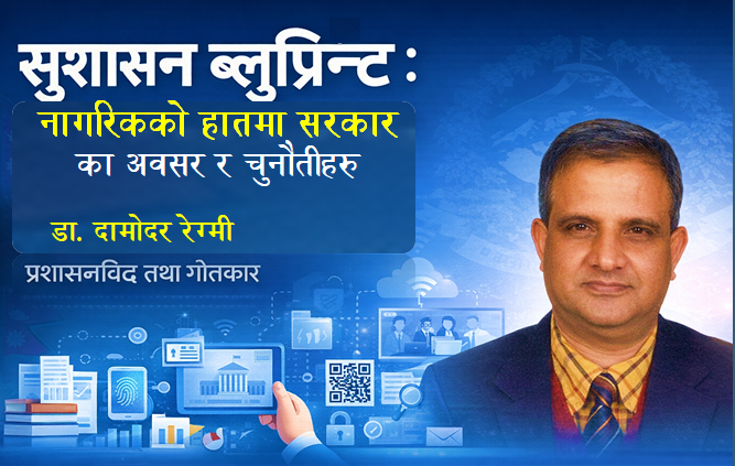 नव निर्वाचित सरकारको गठनसँगै कार्यान्वयनमा लैजाने गरी सरकारी सेवा अब ‘कार्यालय धाउने’ होइन, घरबाटै भन्ने मूल ध्येयका साथ ‘सुशासन ब्लुप्रिन्ट’ तयार भएको छ । प्रधानमन्त्री तथा मन्त्रिपरिषद् कार्यालयको समन्वयमा तयार भएको ११३९ पृष्ठ लामो सुशासनको मार्गचित्र (गुड गभर्नेन्स ब्लुप्रिन्ट) मा नेपालको शासन प्रणालीलाई डिजिटल, पारदर्शी, भ्रष्टाचारमुक्त र परिणाममुखी बनाउने रोडम्याप तयार भएको छ । यस रोडम्यापले सेवा प्रवाह, विकास व्यवस्थापन, स्वास्थ्य, शिक्षा, उद्योग, पर्यटन, ऊर्जा, रोजगारी, प्रशासनिक संरचना र भ्रष्टाचार नियन्त्रणलगायत विभिन्न क्षेत्रमा गरिएका सुधार प्रस्तावहरुले तत् तत् क्षेत्रमा परिवर्तन ल्याइ सुशासन तर्फ सकारात्मक अग्रसरता लिने अपेक्षा रहेको छ ।यो ब्लुप्रिन्टले जनताले भोग्दै आएको ढिलासुस्ती, झन्झट, बिचौलिया र अपारदर्शिता अन्त्य गर्ने लक्ष्य राखेको छ र यसले सरकारी सेवा अब ‘कार्यालय धाउने’ होइन, घरबाटै डिजिटल माध्यममार्फत प्राप्त हुने प्रणालीतर्फ लैजाने सोच लिएको छ । यस मार्गचित्रमा सरकार वा कार्यकारी निकायको कार्यसम्पादन सुधारमा बढी जोड दिइएको छ भने व्यावहारिक कानुन निर्माण तथा न्यायसम्पादनलाई समेत छिटो छरितो र स्वच्छ बनाउने दिशामा समेत सुझावहरू पेश गरिएका छन् ।