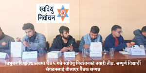 त्रिभुवन विश्वविद्यालयमा चैत्र ५ गते स्ववियु निर्वाचनको तयारी तीव्र, सम्पूर्ण विद्यार्थी संगठनलाई बोलाएर बैठक सम्पन्न २०८१ माघ २३, बुधबार १३:२८
